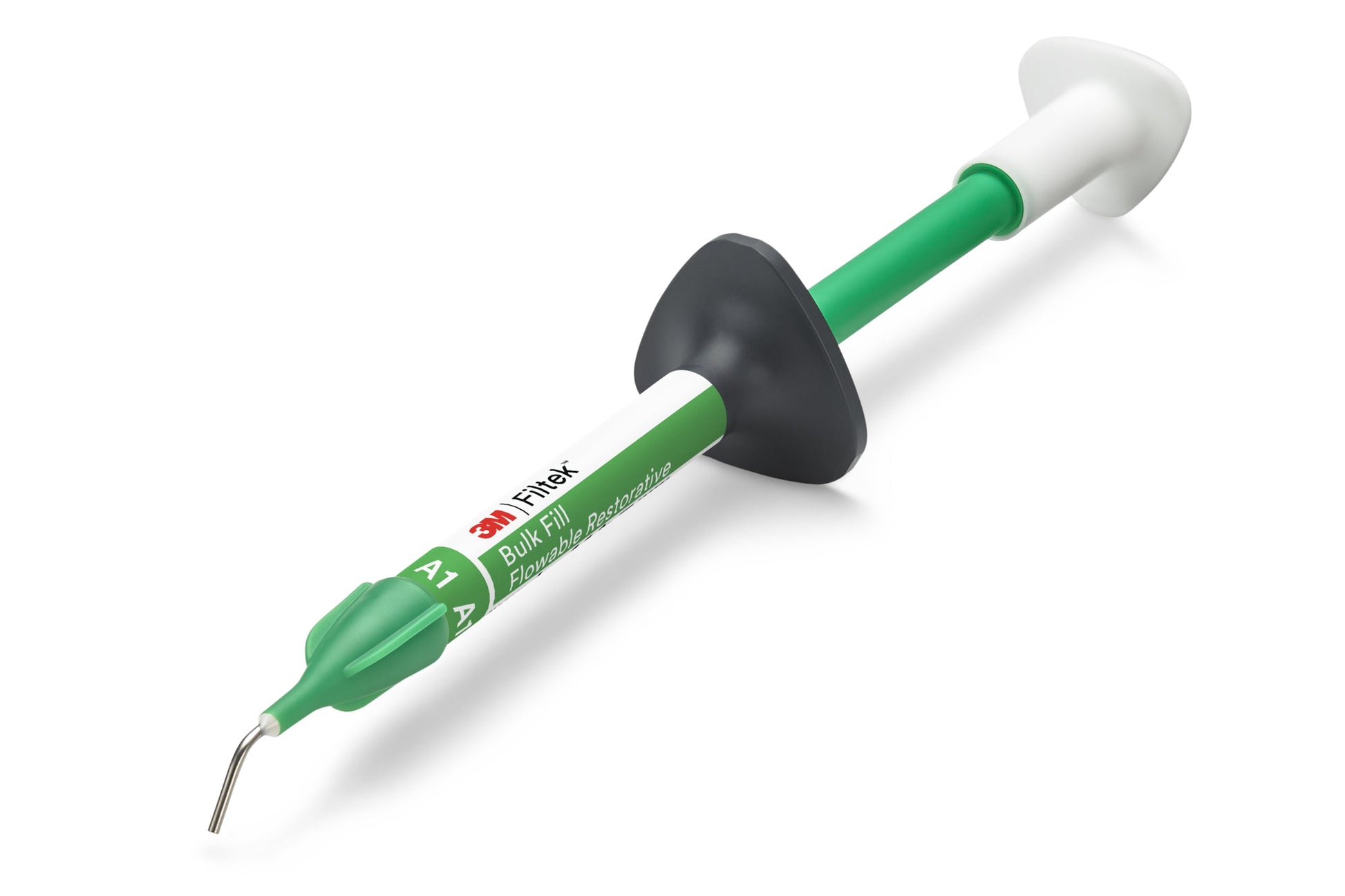 The 3M Filtek Bulk Fill Flowable Restorative uses an optimal blend of fillers and monomers designed to maximize strength, wear resistance and radiopacity and minimize shrinkage. The innovative syringe design virtually eliminates bubbles or “run-on” to give you more control for precise placement in deep restorations.