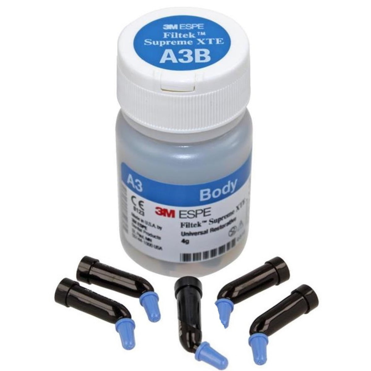 Designed for every restoration - anterior or posterior - the versatile 3M Filtek Supreme XTE Universal Restorative delivers excellent polish retention, exceptional handling and outstanding strength. This universal restorative is a fluorescent, radiopaque and opalescent resin material that lets you offer your patients dental fillings with unsurpassed esthetic results.