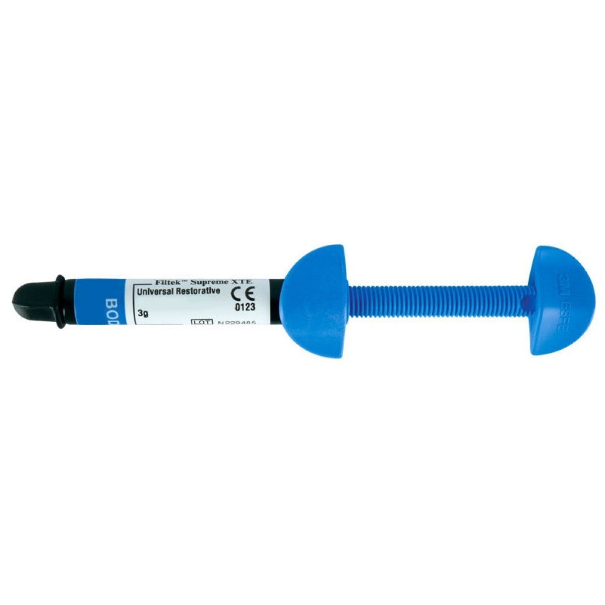 Designed for every restoration - anterior or posterior - the versatile 3M Filtek Supreme XTE Universal Restorative delivers excellent polish retention, exceptional handling and outstanding strength. This universal restorative is a fluorescent, radiopaque and opalescent resin material that lets you offer your patients dental fillings with unsurpassed esthetic results.