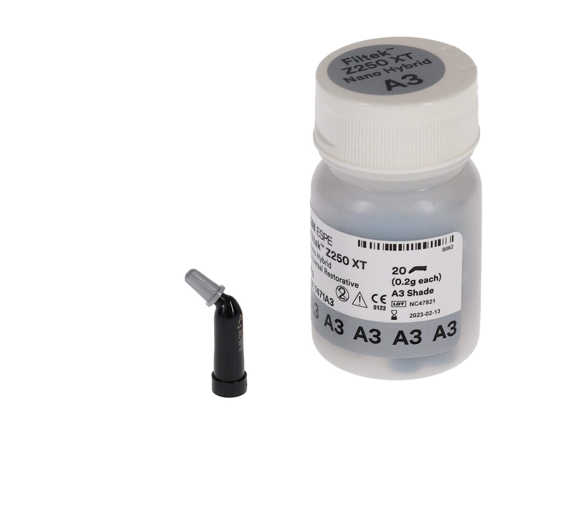 The 3M Filtek Z250 XT Nano Hybrid Universal Restorative is a nanohybrid composite designed for use in all classes of direct restorations, anterior or posterior. Available in 12 shades, this dental filling material offers a good balance of features you rely on most for natural-looking dental fillings.